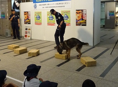 門司税関は、福岡県が主催する「ダメ。ゼッタイ。」関係街頭キャンペーンにおいて麻薬探知犬のデモンストレーションによる薬物乱用防止を呼びかけた。会場となった福岡市中央区天神のライオン広場においては、薬物乱用防止を訴えるパネルが展示され、実行委員長挨拶、小学生によるヤングボランティア決意表明に引き続き、監視部麻薬探知犬管理室の由田インストラクターと河野ハンドラーが「ナタリー号」による麻薬探知犬のデモンストレーションを披露した。ナタリー号が、みごとにダミーが入った箱を発見すると、見学者から歓声がわき、麻薬探知犬の能力に感心していた。