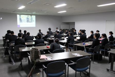 - 福岡空港税関支署は、福岡県警察学校の第528期初任科学生等40名の見学を受け入れ、税関広報DVDの視聴、税関業務の説明に引き続いて、空港施設の見学を実施した。業務説明においては、覚醒剤発見の端緒や税関はどの様にしてコピー商品を見分けているのかなどについて熱心に質問がなされ、税関業務に関心を寄せていた。