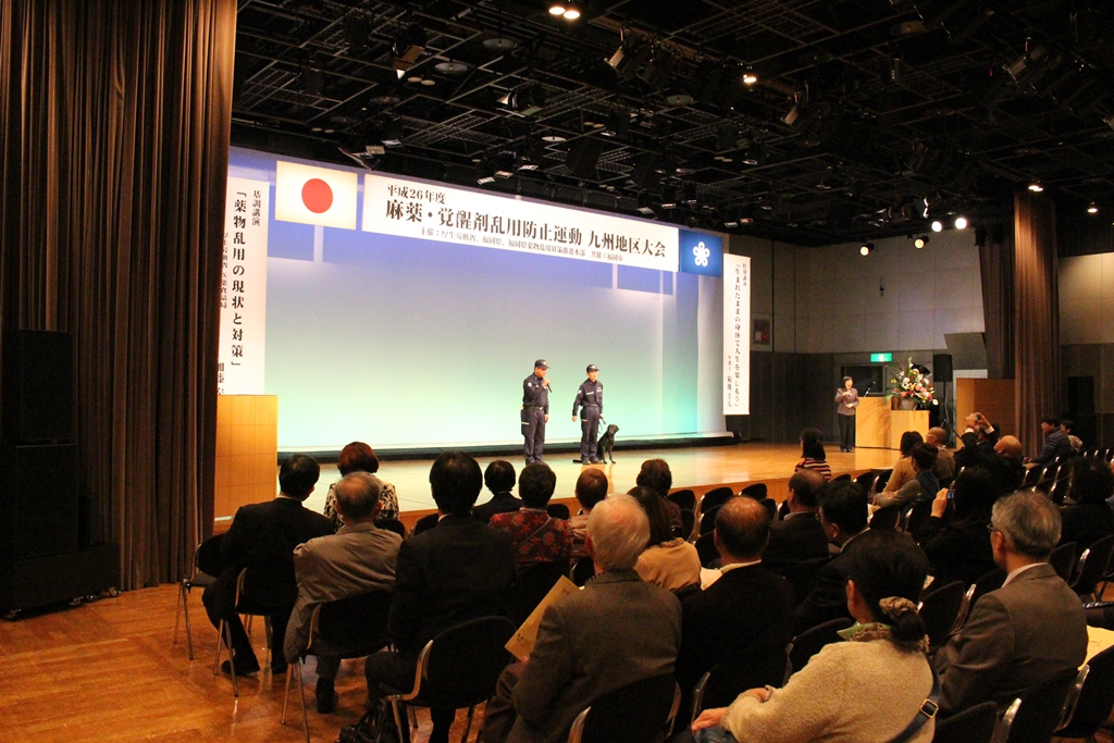 - 福岡麻薬探知犬管理センターは、アクロス福岡イベントホールにて、福岡県が主催する「平成26年度麻薬・覚醒剤乱用防止運動九州大会」に参加し、麻薬探知犬のデモンストレーションをおこなった。