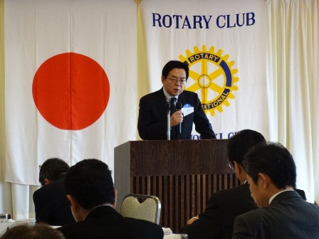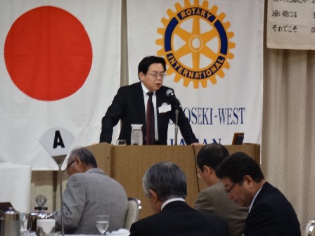 卓話では、田中支署長が、税関の組織及び業務の現状、並びに税関の3つの使命に沿って取組状況等を紹介するとともに、下関港における貿易動向、税関HPの紹介、情報提供依頼などを行った。