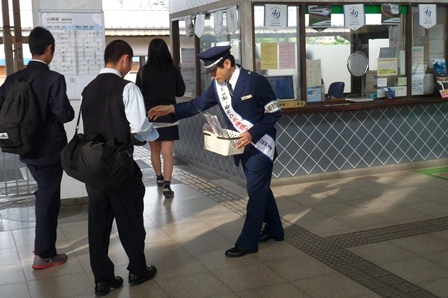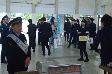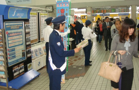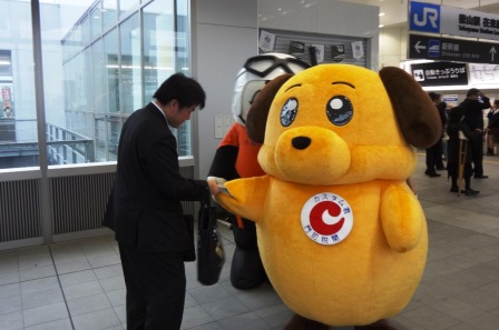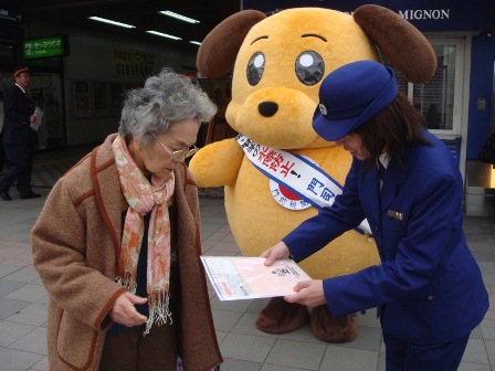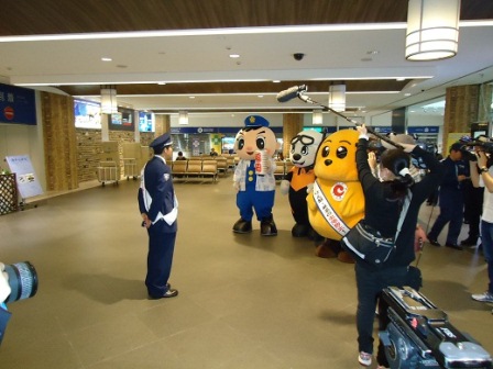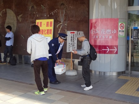- 門司税関徳山税関支署は、薬物及び銃器取締強化期間(本年5月7日(木)〜31日(日))に伴い、JR徳山駅前において、徳山海上保安部、周南警察署、入国管理局周南出張所、門司通関業会徳山通関支部会と合同で密輸に関する情報提供を呼びかける街頭キャンペーンを実施した。キャンペーンでは、制服職員が密輸情報提供を呼びかけるチラシを配布するとともに、税関イメージキャラクター「カスタム君」も市民と触れ合うなど税関をPRし、当日の模様はニュース番組等で報道されました。薬物及び銃器の密輸に関する情報は、税関密輸ダイヤル『0120-461(シロイ)-961(クロイ)』までご一報ください。