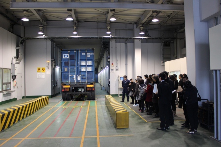 門司税関の業務内容、門司港と門司税関の歴史及び不正薬物の摘発状況等の説明のあと、コンテナを車両に積載したまま検査が可能な大型X線検査装置の説明と見学を行った。大型X線検査装置の見学では、見学者らは食い入るように施設に見入っており、税関業務に対する熱心な姿勢がうかがわれた。