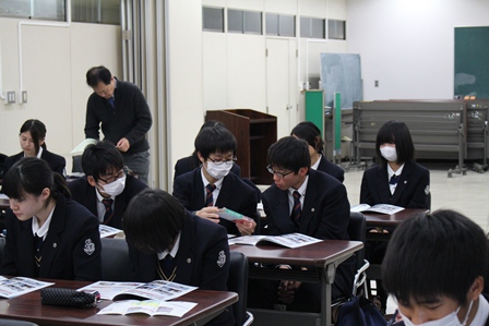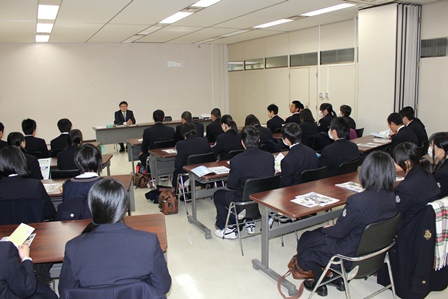 - 門司税関は、久留米商業高等学校36名(引率の先生1名、生徒35名)の見学受入れを行い、税関広報広聴室の職員から将来公務員を志望する生徒等に対して「税関の業務内容の説明、税関職員になるためには」等について説明を行った。聴講する生徒たちは、熱心に耳を傾け、税関の業務内容に対する関心の高さがうかがえた。将来、この生徒の中から“門司税関ファミリー”に一人でも多く加入していただけることを期待している。