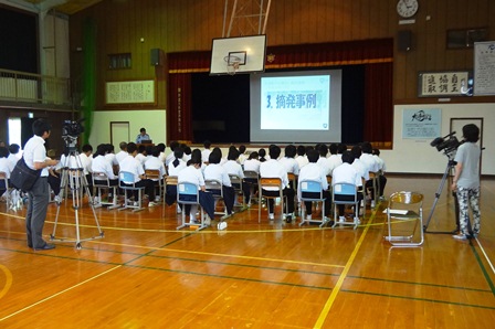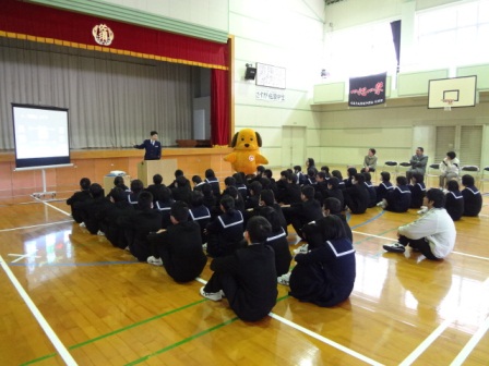 - 門司税関厳原税関支署は、対馬市立豆酘中学校の全校生徒26名に対し、「薬物乱用防止教室」を行った。税関教室では、覚醒剤や大麻を始めとした不正薬物の恐ろしさやそれらを水際で取り締まる税関の役割及び最近の摘発事例について説明するとともに、麻薬探知犬によるデモンストレーションを行った。生徒たちは、麻薬探知犬の能力の高さに歓声を上げ、麻薬探知犬の種類や育成方法などに多くの質問を寄せるなど、今回の教室を通じて、不正薬物の恐ろしさはもとより、税関の存在やその役割についても地元の中学生に理解していただく良い機会となった。