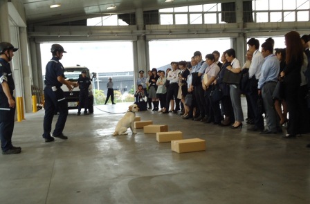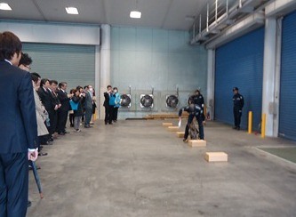 - 門司税関博多税関支署は、博多地区国際貨物検査センターにおいて、福岡貿易会主催の「新人・新任者向け貿易研修会」の受講者48名の見学を受け入れた。車両にコンテナを搭載した状態で検査が行える同センター配備の大型X線検査装置の説明及び見学の後、麻薬探知犬によるデモンストレーションの見学及び麻薬探知犬の能力についての説明を実施した。今回の見学を通じて、税関の使命に基づく取組みをご理解いただき、今後、貿易に関わる各社の業務に役立てていただくことを期待したい。