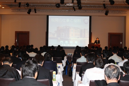 - 門司税関は、門司港ホテル(北九州市)において開催された(一社)北九州港振興協会主催の「北九州港オリエンテーション」において、新たに港湾関係業務に従事する同協会会員約130名に対し、「税関の仕事と役割」と題した講演を行った。講演では、税関広報広聴専門官から、税関の使命及び門司税関の概況を説明するとともに、門司税関や全国の税関における不正薬物や知的財産侵害物品の取締り状況について紹介を行った。