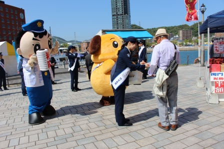 - 門司税関では、本年5月7日(木)〜31日(日)までの間を「薬物及び銃器取締強化期間」として位置づけ、不正薬物や銃器等の社会悪物品に対する特別取締りを実施しており、門司税関管内の各地で関係機関等と合同による密輸に関する情報提供を呼びかける街頭キャンペーンを開催いたしました。