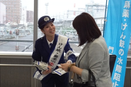 - 門司税関では、本年5月7日(木)〜31日(日)までの間を「薬物及び銃器取締強化期間」として位置づけ、不正薬物や銃器等の社会悪物品に対する特別取締りを実施する予定としております。特別取締りに当たり、門司税関管内の各地で関係機関等と合同で密輸に関する情報提供を呼びかける街頭キャンペーンを開催いたしました。