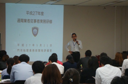 - 門司税関は、5月20日(水)から22日(金)までの3日間、門司港湾合同庁舎において開催された門司通関業会主催の「通関業者従事者実務研修」に9名の講師を派遣し、57名の受講者に対し税関の概要や、関税法等の基本的な内容について講義を行った。この研修は、門司通関業会に所属する社の業務経験の浅い従事者を対象に、通関業務に必要な知識の修得を目的に例年開催されているもので、実務に沿った講義に受講者は熱心に耳を傾けていた。