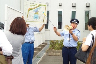 1日目は、博多地区国際貨物検査センター(福岡市東区香椎浜ふ頭)において、コンテナを車両に積載したまま検査が可能な大型X線検査装置に係る説明及び麻薬探知犬の能力を紹介するためのデモンストレーションを実施し、2日目は博多港センタービル会議室(福岡市博多区沖浜町)において、「税関の仕事と役割」と題して、輸出入貨物の流れや博多港の貿易概況等について説明を行うとともに、密輸情報の提供に係る協力を求めた。