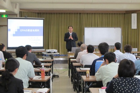 - 門司税関は、福岡財務支局・福岡商工会議所・(公財)日本関税協会門司支部と連携し、日本企業の海外展開を支援するための一策として、福岡合同庁舎において「EPAセミナー」を開催し、国際貿易関係業者等約100名に対して、EPA制度の概要、EPAを利用する際に必要な知識となる原産地規則及び特定原産地証明書の申請手続きについて説明を行った。また、同セミナーの最後には、本年1月に日豪EPAが発行したことを踏まえ、在福岡オーストラリア総領事官のトム・イェイツ氏からも挨拶をいただいた。なお、同セミナーについては、今後、大分地区及び徳山地区においても開催予定としている。