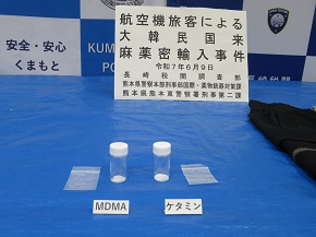 長崎税関は、八代税関支署熊本空港出張所において摘発した大韓民国来航空機旅客による麻薬(MDMA及びケタミン)輸入未遂事件について、熊本県警察と共同調査(捜査)を実施し、本日、犯則嫌疑者1名を関税法違反(麻薬輸入未遂)により、熊本地方検察庁に告発した。【犯則物件】