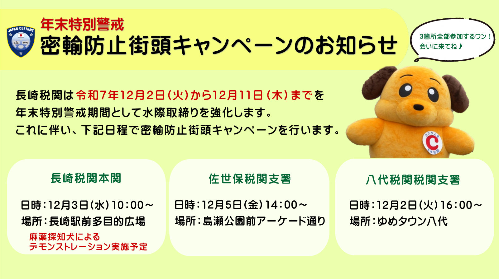 ・「年末特別警戒」における密輸防止街頭キャンペーンのお知らせ