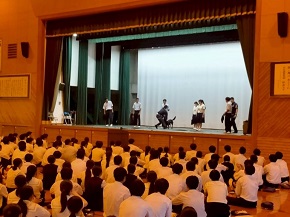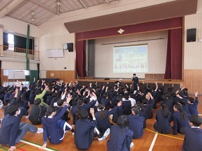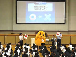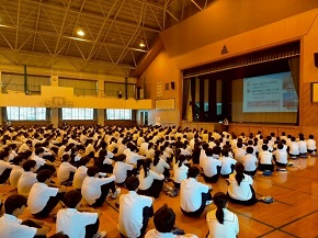長崎税関は、長崎県立長崎工業高等学校において、生徒及び教職員約1,000名に対し、薬物乱用防止に関する講話と税関の業務説明を行った。また、カスタム君と一緒に〇×クイズで理解を深めた。