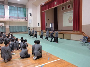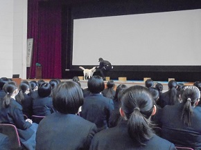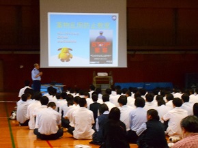 三池税関支署は、明光学園高等学校において、生徒及び教職員108名に対し、薬物乱用防止に関する講話、税関の業務説明及び麻薬探知犬によるデモンストレーションを実施した。