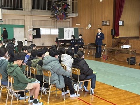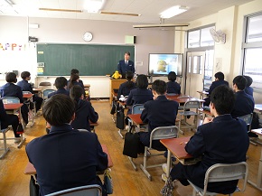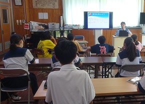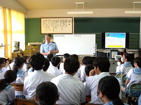 鹿児島税関支署名瀬監視署は、宇検村立阿室小中学校において、児童、生徒及び教職員計18名に対し、薬物乱用防止に関する講話及び税関の業務説明を実施した。