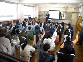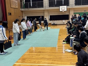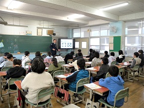 三池税関支署は、大牟田市立明治小学校において、児童、保護者及び教職員約80名に対し、薬物乱用防止に関する講話、税関の業務説明及び麻薬探知犬によるデモンストレーションを実施した。