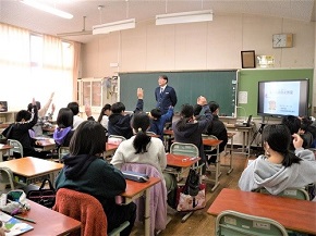 長崎税関は、長崎市立野母崎中学校において、生徒及び教職員21名に対し、薬物乱用防止に関する講話を実施した。また、税関の業務説明を行い、手荷物検査及び金属探知機による身辺検査のお仕事体験も実施した。