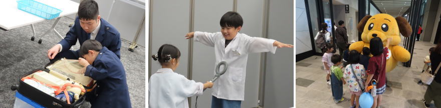 長崎税関は、NIB長崎国際テレビが主催するDEJIMA博「こどもジョブチャレンジ」へ出展し、お仕事体験と税関業務のPRを行った。当日は、たくさんの子供たちが制服を着用し、旅具検査、試薬を使った分析作業及び金属探知機を使った身辺検査を体験したほか、顔出しパネルやカスタム君の登場もあり、多数の来場者が訪れた。