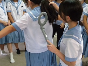 長崎税関は、長崎市立福田小学校において、児童及び教職員69名に対し、薬物乱用防止に関する講話を実施した。また、税関の業務説明を行い、金属探知機による身辺検査のお仕事体験も実施した。