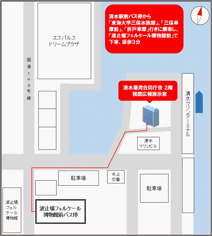 | 所在地 | 静岡市清水区日の出町9−1 清水港湾合同庁舎2階 (通関事務室内) |