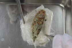 犯則嫌疑者は、自ら服用する目的で、国際スピード郵便1個内に隠匿して密輸入しようとしたが、本年11月26日、名古屋税関中部外郵出張所職員による輸入貨物検査で発見され、その意を遂げなかったものである。