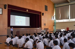 平成25年7月17日(水) 名古屋税関、岐阜県中津川市立付知中学校の「薬物乱用防止教室」で講演