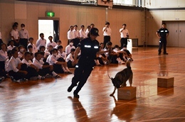 名古屋税関は、静岡県立科学技術高等学校で開催された薬物乱用防止教室で、生徒及び教職員約1,100名を対象に講演を行った。講演では、税関の使命や役割の他、薬物を乱用した際の身体や社会へ及ぼす悪影響などについて説明した。また、講演後に麻薬探知犬によるデモンストレーションを実施し、麻薬探知犬が麻薬の臭いの付いた箱に反応すると生徒から大きな拍手が湧き起こった。
