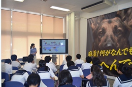 名古屋税関四日市税関支署は、伊勢学園高等学校で開催された「薬物乱用防止教室」で、生徒及び教員約240名を対象に講演を行った。講演では、薬物を乱用した際に身体や社会へ及ぼす影響などについて説明したほか、不正薬物等の密輸を取り締まる税関の役割と取り組みについて紹介した。また、講演後の麻薬探知犬によるデモンストレーションでは、探知犬が薬物の臭いが付いた手提げ袋を探し当てると生徒から歓声が上がった。