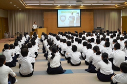 平成26年12月12日(金)名古屋税関、岐阜県各務原市立桜丘中学校の薬物乱用防止教室で講演