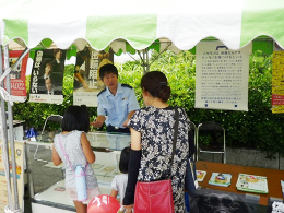 名古屋税関西部出張所は、飛島村が主催する「2014飛島ふるさとフェスタ」に参加し、不正薬物の模造品や不正薬物の隠匿手口等を展示して、不正薬物に手を出さないよう啓蒙活動を行うとともに、リーフレットを配布して密輸情報の提供を呼び掛けた。