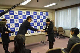 平成26年2月14日(金)名古屋税関、常滑高等学校生徒へ税関ポスター制作の感謝状を贈呈