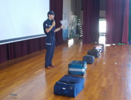 また、併せて麻薬探知犬による検査を実演し、麻薬探知犬が麻薬の臭いが付いた鞄に反応すると生徒から大きな拍手をいただきました。