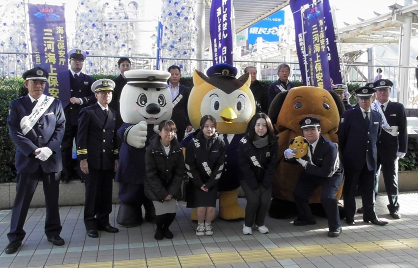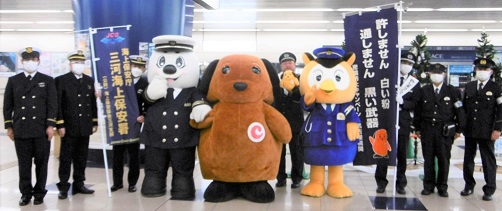 名古屋税関豊橋税関支署は、三河海上保安署、蒲郡警察署と合同で、JR蒲郡駅において密輸取締年末特別警戒街頭キャンペーンを実施しました。