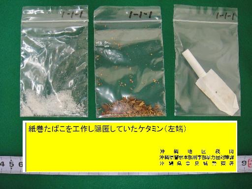 沖縄地区税関は、平成24年7月7日、台湾から那覇空港に到着した台湾人の男性が麻薬であるケタミンを密輸入しようとしたところを、那覇空港税関支署職員が入国旅具検査において発見、摘発し、沖縄県警察本部、豊見城警察署との合同調査により、7月25日、関税法違反事件で那覇地方検察庁に告発した。
