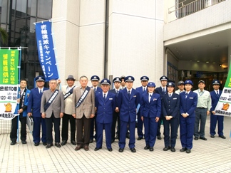 情報収集強化月間の実施に伴う街頭キャンペーンを実施沖縄地区税関は、平成24年2月期情報収集強化月間の実施に伴う広報活動の一環として、那覇市久茂地在パレットくもじイベント広場において、沖縄通関業会、沖縄地区税関保税事務連絡協議会及び沖縄地区税関名誉署長(山城幸久氏)の参加を得て、合同で街頭キャンペーンを実施し、沖縄県民に対し密輸情報の提供を呼び掛けた。 | |