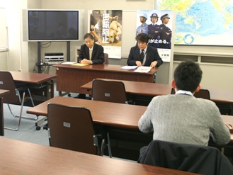 専修学校に対する税関業務説明会を実施沖縄地区税関は、専修学校沖縄ペットワールド専門学校の生徒ら18名に対し、税関業務概況説明及び麻薬探知犬による公開訓練の見学会を実施しました。併せて、今月2月を「密輸情報収集強化月間」として情報収集に取組んでいることに伴い密輸情報の提供についても依頼した。 | |