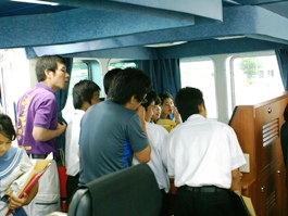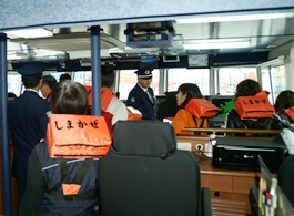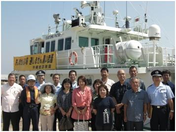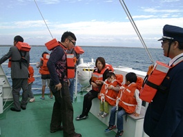 平成24年度税関記念日行事「監視艇乗艇会」実施沖縄地区税関は、今年の税関記念日関連行事の一環として、貿易手続きに関係する会社の社員及びその家族、並びに税関職員の家族63名に対し、密輸取締りに従事する監視艇「しまかぜ」に乗船し、海上取締りの重要性を理解して頂くことを目的に本乗艇会を実施した。 | |