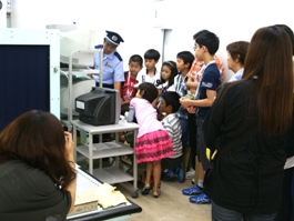 沖縄地区税関発足40周年記念親子見学会実施沖縄地区税関は、発足40周年にあたり親子で税関の役割や仕事についてよく知ってもらおうと小学生とその保護者(6組14名)に対して「税関親子見学会」を実施した。同見学会は、不正薬物、けん銃、コピー商品などの水際阻止に取り組む税関の役割や不正薬物の恐ろしさについて説明したほか、那覇空港税関支署において麻薬探知犬やエックス線検査装置のデモンストレーションを行った。 | |