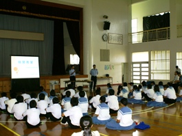 伊平屋中学校において税関教室を実施伊平屋中学校において生徒ら52名に対し税関教室及び監視艇におけるミニ税関展を実施した。本教室は平成24年5月期「薬物及び銃器取締強化期間」に伴う監視艇「しまかぜ」による離島地区における巡回取締り及び税関の広報活動の一環として実施したものである。 | |