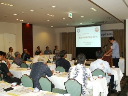 久米島において税関業務説明会を実施久米島町内のホテルにおいて、沖縄地区税関創立40周年記念行事の一環及び「薬物及び銃器取締対策強化期間」における税関広報活動として、久米島商工会会員等9名に対して税関業務説明会及び新造監視艇「しまかぜ」の試乗会を実施した。税関業務説明会では、「最近の税関行政について」、「平成23年の沖縄地区税関における関税法違反事件の取締状況」、「平成23年における知的財産侵害物品の輸入差止実績について」説明を行った。 | |