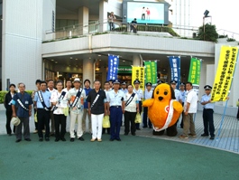 沖縄通関業会及び沖縄地区税関保税事務連絡協議会との合同街頭キャンペーン実施沖縄地区税関は、「薬物および銃器取締強化期間」に伴い那覇市パレットくもじ前広場で沖縄通関業会及び沖縄地区税関保税事務連絡協議会と合同による街頭キャンペーンを実施した。同広場を通行する県民の方に、協力依頼のチラシを配布し、不正薬物等社会悪物品の水際での取締状況をPRするとともに、密輸ダイヤル0120−461−961(シロイ クロイ)への密輸情報提供を呼びかけた。 | |