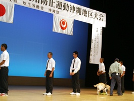 第21回麻薬・覚醒剤乱用防止運動沖縄地区大会に参加沖縄地区税関は、浦添市てだこホールにおいて実施された「第21回麻薬・覚醒剤乱用防止運動沖縄地区大会(厚生労働省、沖縄県主催)」に参加し、麻薬探知犬のデモンストレーションによって、同大会に参加した県内中学校、高校生ら及び一般の方々に対して麻薬撲滅の訴えかけに一役買いました。 | |