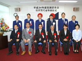 平成24年度税関記念日税関業績者等表彰式挙行11月28日(水)、沖縄地区税関において「平成24年度税関記念日税関業績者等表彰式」が挙行されました。式典では濱岡税関長から税関行政に功労があった部外者の方々に対し感謝状の贈呈が行われました。 | |