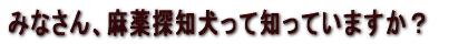 麻薬探知犬(まやくたんちけん)は、人間の数万倍(すうまんばい)といわれるすばらしい嗅覚(きゅうかく)をもっています。そのすばらしい能力(のうりょく)を活用(かつよう)して、少しの匂(にお)いでも麻薬(まやく)を見つけ出すことができます。