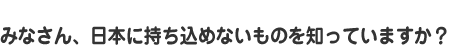 税関(ぜいかん)では、日本の玄関口(げんかんぐち)である空港(くうこう)や海港(かいこう)において、健全(けんぜん)で明るい社会をおびやかす悪(わる)い品物(しなもの)の持ち込(こ)みを禁止(きんし)しています。これに違反(いはん)すると、関税法(かんぜいほう)などにより罰(ばつ)を受けたり、品物を没収(ぼっしゅう)されることがあります。