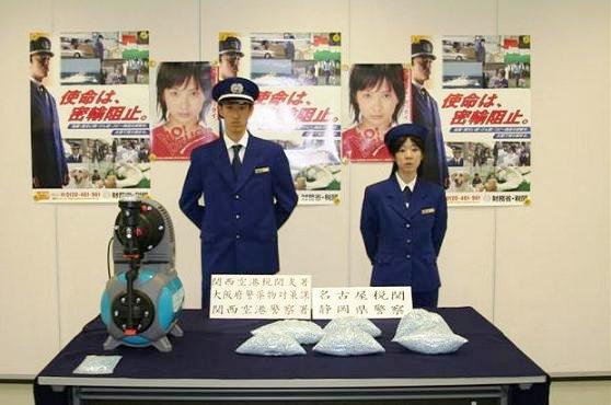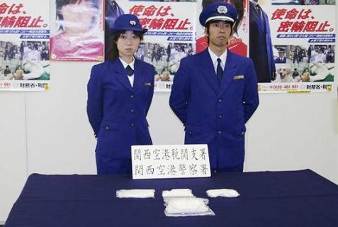 大阪税関関西空港税関支署は、平成19年10月11日、台湾から関西空港に到着した台湾人男性がガードル等で身辺に隠匿し密輸入しようとした覚せい剤980.74グラム(薬物乱用者の通常使用量で約32,400回分)を摘発し、同年10月31日までに同人を関税法違反容疑で大阪地方検察庁に告発した。