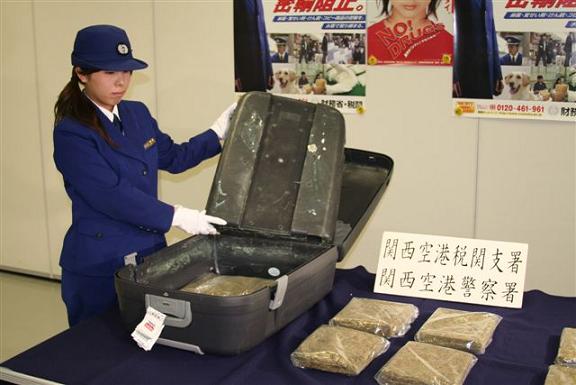 大阪税関関西空港税関支署は、平成19年10月8日、南アフリカ共和国から関西空港に到着したベルギー人男性が携行のハードスーツケース内に隠匿し密輸入しようとした大麻草8,866.53グラム(薬物乱用者の通常使用量で約17,700回分)を摘発し、同年10月29日までに同人を関税法違反容疑で大阪地方検察庁に告発した。