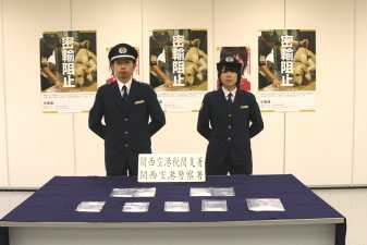 大阪税関は、東京税関、名古屋税関、門司税関と共同調査の上、外国貿易船乗組員らが密輸入しようとした覚せい剤6袋2,991.14グラム(薬物乱用者の通常使用量で約10万回分)を摘発し、1月17日、関税法違反容疑で大阪地方検察庁に告発した。(1月18日 報道発表)
