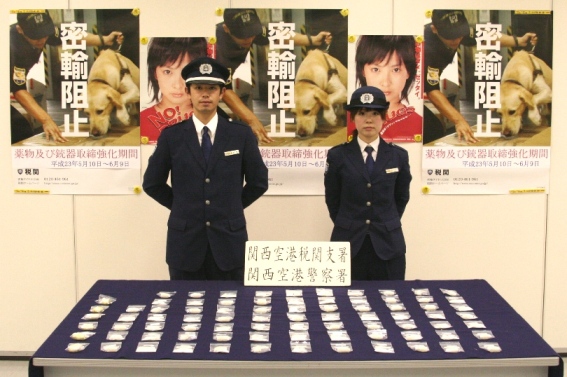 大阪税関関西空港税関支署は、平成23年10月6日、カナダから香港を経由して関西国際空港に入国したカナダ人女性が体腔内に隠匿して密輸入しようとした覚せい剤151.02グラム(薬物乱用者の通常使用量で約5千回分)を摘発し、大阪府関西空港警察署と共同調査の上、10月27日、関税法違反容疑で大阪地方検察庁に告発した。(10月31日報道発表)